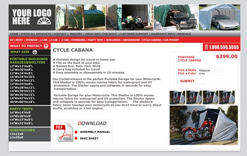 All of these great products from MDM Shelters will be included in your web dealer package, complete with their own pages: