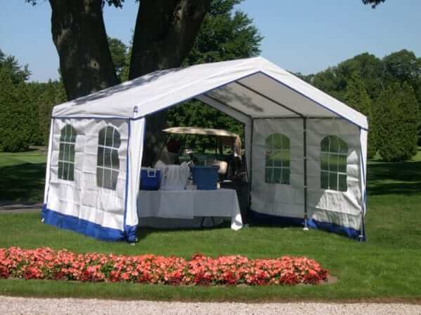 Our party tents come with Velcro fastened walls that are easy to assembly and remove. This gives you the option to create an open air exhibit or position the tents side to side for events that require more space. All of our party tents use fire-rated fabric. You can have the peace of mind knowing that your public events are safe with our CPAI-84 fire rated covers. Assembly is easy and no tools are required. Host your next sporting event or party with the ultimate outdoor protection.