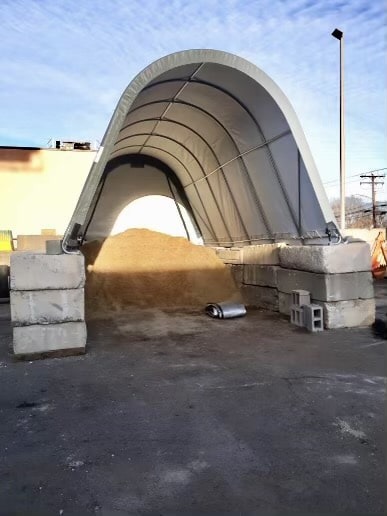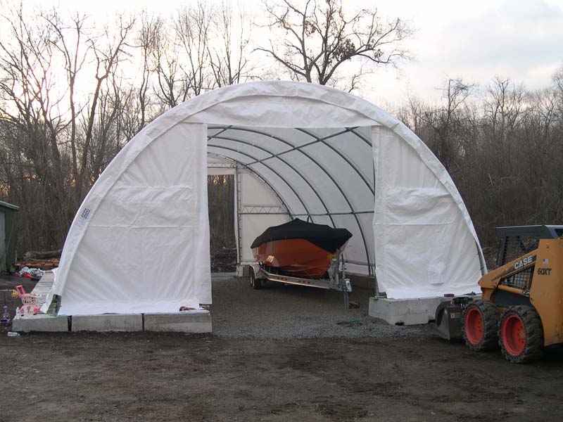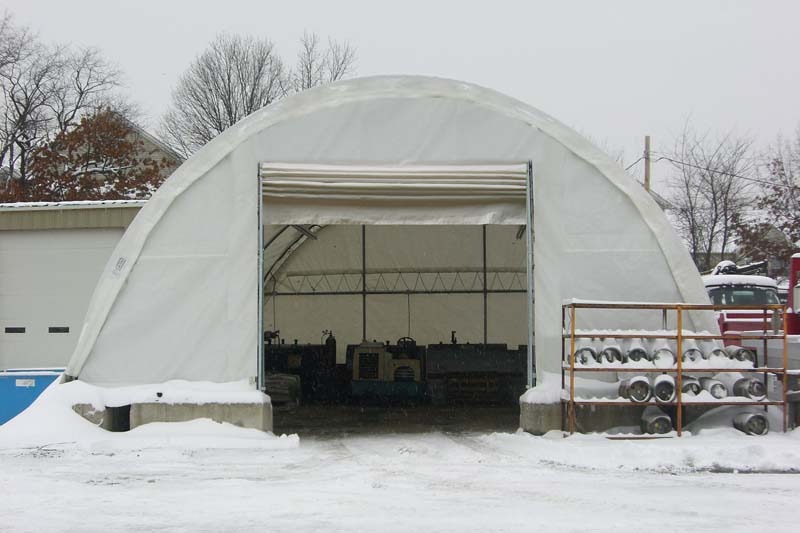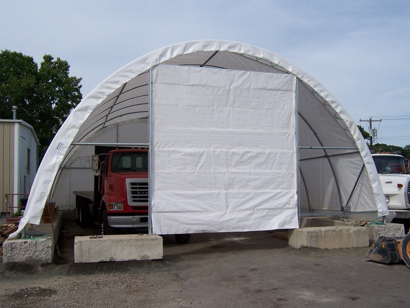 The crank operated doors are included with your purchase, making it easy to access this portable building. All of our products are constructed of heavy-duty steel frames made of galvanized steel. Our long-lasting covers are durable and strong. They come with UV resistant protection and fire retardant material. Ratchet straps keep your cover from loosening or sagging and the tight fit gives you dependable protection from any type of weather.