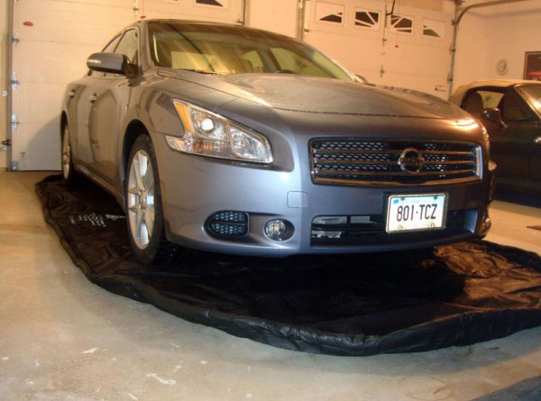 The Protection Pocket floor guard works great for protecting your garage floor from ice, snow, sand, oil, antifreeze, brake fluid, and mud. One size fits most vehicles. Works great for protecting your floor from stains caused by dripping fluids from your car. The Protection Pocket floor guard is made of a heavy duty 22 mil. thick rip stop poly. The material is 100% water proof, commonly used as pond liners, and works great for holding water. The outer edge has a raised foam insert to hold in liquids that fall from your car. The Protection Pocket Floor Guard is easy to install and easy to break down for storage.